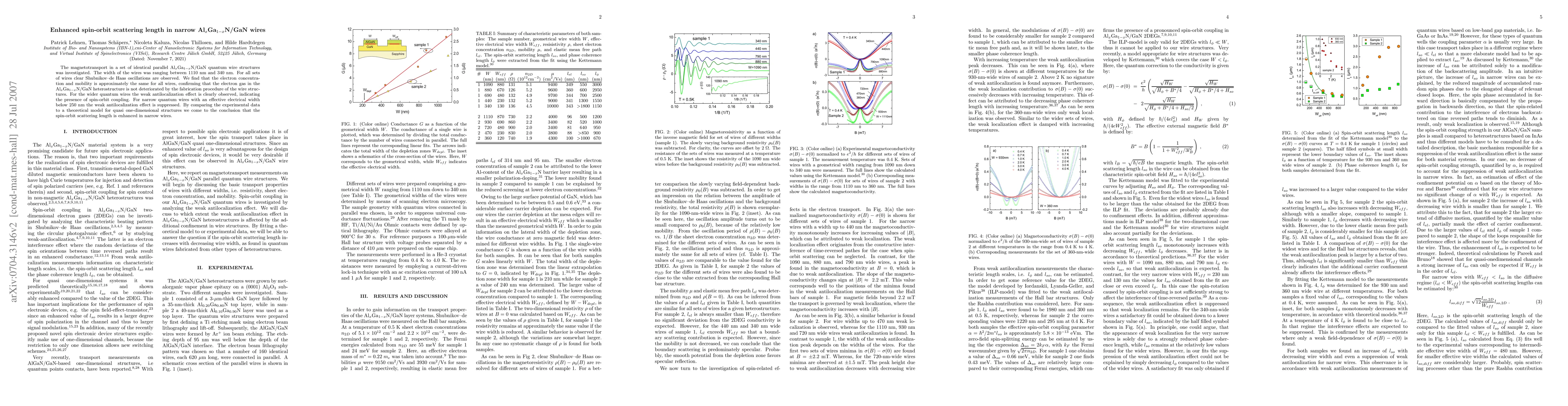 Researchers found that spin-orbit scattering length is enhanced in narrow Al_xGa_{1-x}N/GaN wires with widths below 250 nm, a phenomenon not observed in wider wires.