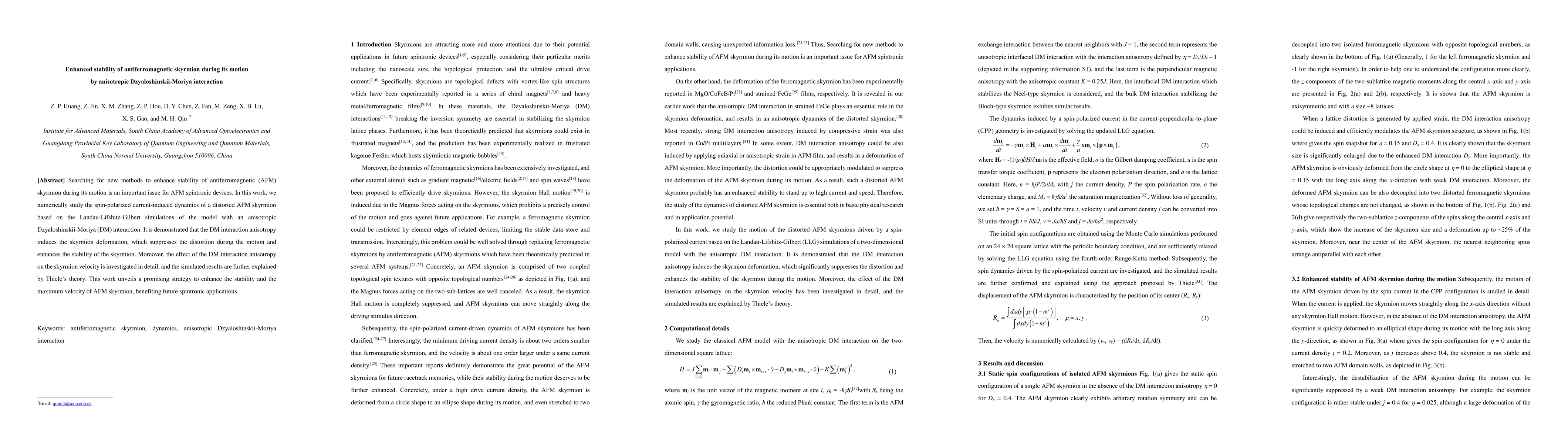 This paper investigates how anisotropic Dzyaloshinskii Moriya interaction (DMI) enhances the stability of antiferromagnetic skyrmions during motion using Landau Lifshitz Gilbert simulations. The study finds that DMI anisotropy induces skyrmion deformation, reducing distortion and improving stability, with implications for future AFM spintronic devices.