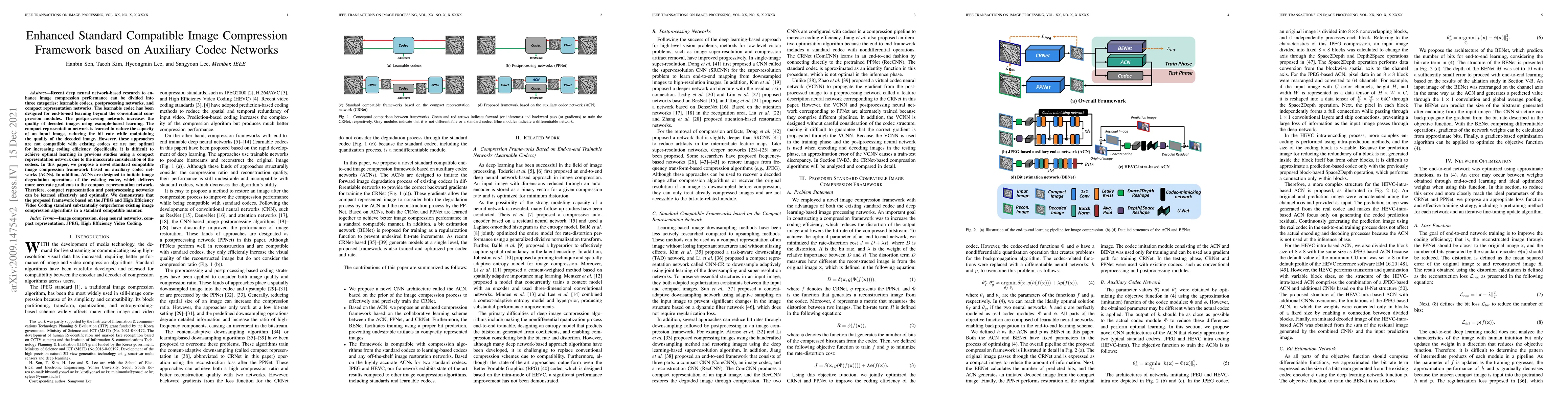 This paper proposes a novel image compression framework using Auxiliary Codec Networks (ACNs) to enhance compatibility with existing codecs and improve coding efficiency. The ACNs simulate the degradation operations of the standard codecs, enabling optimal learning for both the compact representation and postprocessing networks.