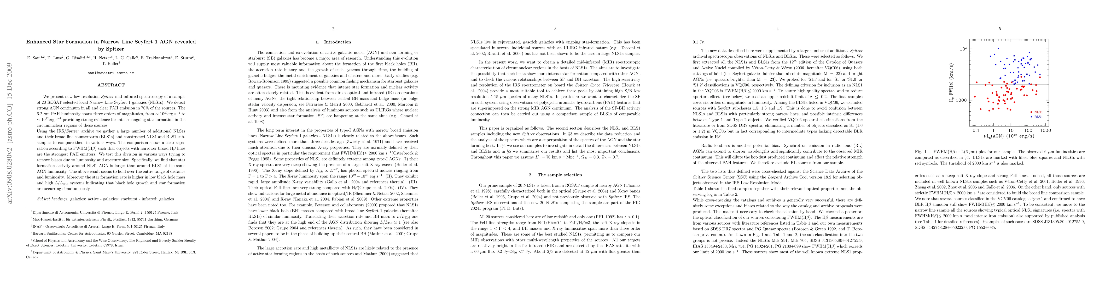 We present new low resolution Spitzer mid-infrared spectroscopy of a sample of 20 ROSAT selected local Narrow Line Seyfert 1 galaxies (NLS1s). We detect strong AGN continuum in all and clear PAH emission in 70% of the sources. The 6.2 micron PAH luminosity spans three orders of magnitudes, from ~10^(39) erg/s to ~10^(42) erg/s providing strong evidence for intense ongoing star formation in the circumnuclear regions of these sources. Using the IRS/Spitzer archive we gather a large number of additional NLS1s and their broad line counterparts (BLS1s) and constructed NLS1 and BLS1 sub-samples to compare them in various ways. The comparison shows a clear separation according to FWHM(H_beta) such that objects with narrower broad H_beta lines are the strongest PAH emitters. We test this division in various ways trying to remove biases due to luminosity and aperture size. Specifically, we find that star formation activity around NLS1 AGN is larger than around BLS1 of the same AGN luminosity. The above result seems to hold over the entire range of distance and luminosity. Moreover the star formation rate is higher in low black hole mass and high L/L_Edd systems indicating that black hole growth and star formation are occurring simultaneously.