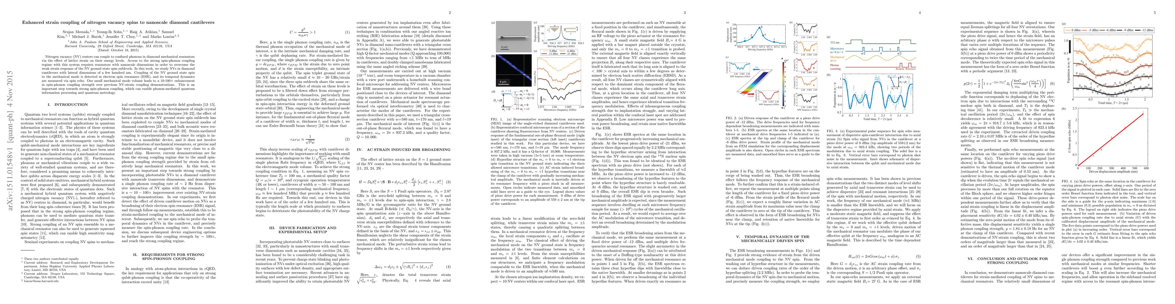 This paper investigates the enhanced strain coupling of nitrogen vacancy (NV) spins in nanoscale diamond cantilevers, achieving a significant increase in spin-phonon coupling strength via electron spin resonance and spin echo techniques. This advancement is crucial for phonon-mediated quantum information processing and quantum metrology.