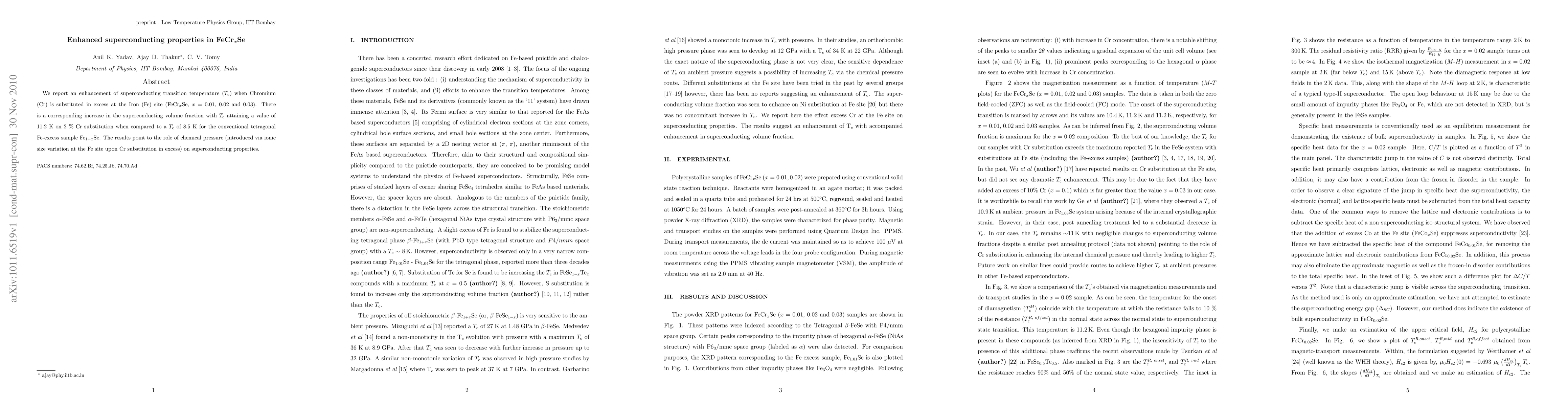 We report an enhancement of superconducting transition temperature ($T_{\rm c}$) when Chromium (Cr) is substituted in excess at the Iron (Fe) site (FeCr$_x$Se, $x=$0.01, 0.02 and 0.03). There is a corresponding increase in the superconducting volume fraction with $T_{\rm c}$ attaining a value of 11.2 K on 2 $%$ Cr substitution when compared to a $T_{\rm c}$ of 8.5 K for the conventional tetragonal Fe-excess sample Fe$_{1+x}$Se. The results point to the role of chemical pressure (introduced via ionic size variation at the Fe site upon Cr substitution in excess) on superconducting properties.