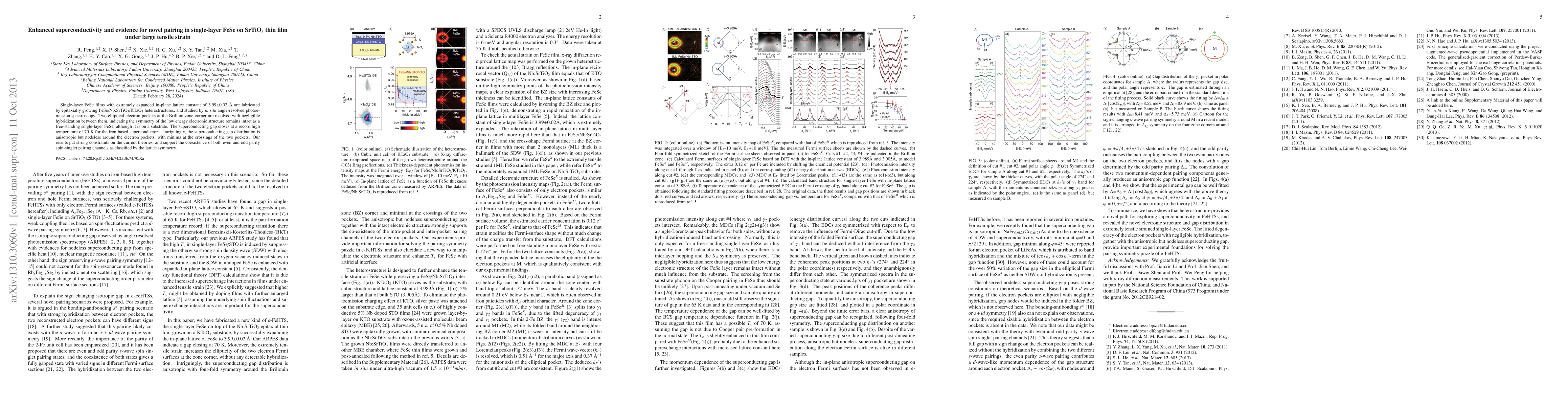 This study reveals enhanced superconductivity in single-layer FeSe on SrTiO3 under tensile strain, achieving a high critical temperature of 70K. The anisotropic, nodeless superconducting gap suggests novel pairing mechanisms, challenging existing theories and indicating both even and odd parity spin-singlet pairing.
