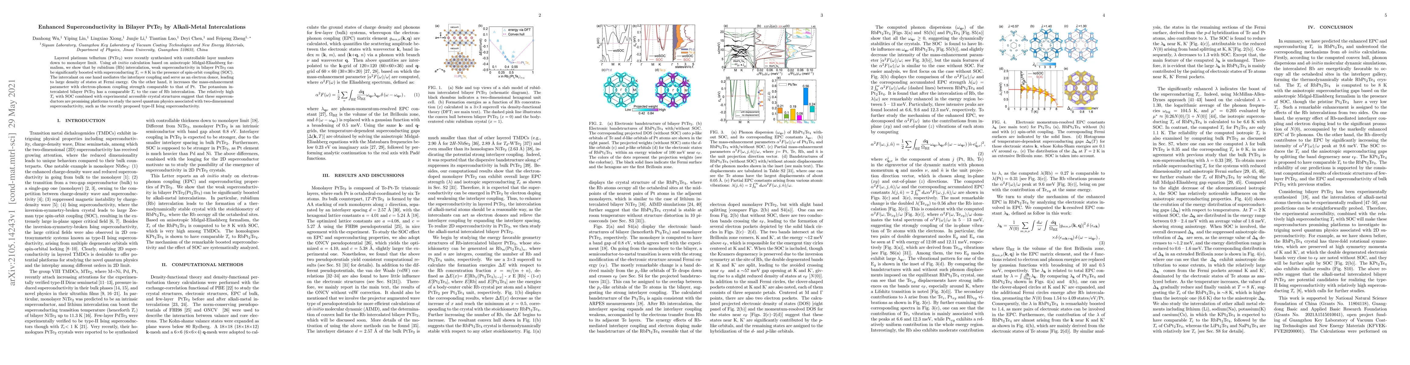 This study demonstrates that rubidium and potassium intercalations significantly enhance superconductivity in bilayer PtTe$_2$, boosting the critical temperature to 8 K with spin-orbit coupling. The intercalants mediate interlayer coupling and increase electron-phonon coupling, indicating potential for exploring novel quantum physics in two-dimensional superconductors.