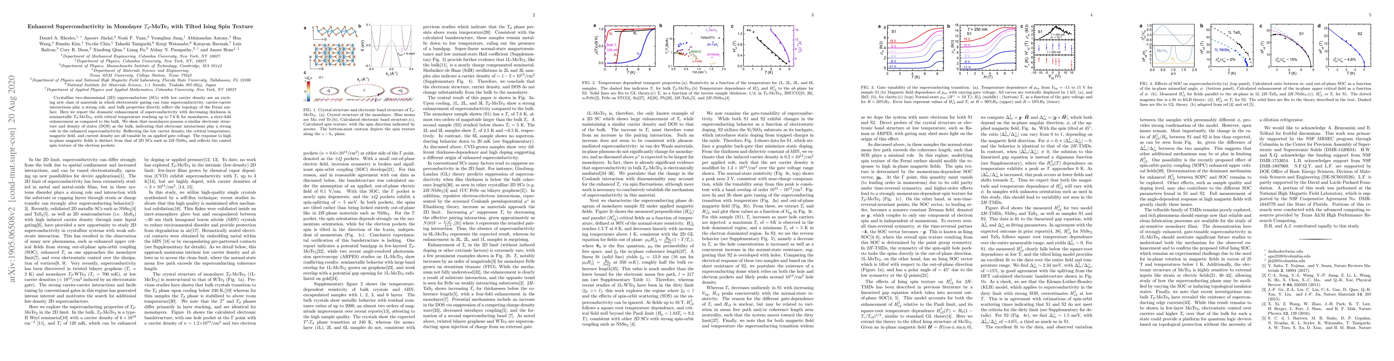 Monolayer T_d-MoTe_2 exhibits superconductivity at 8 K, a sixty-fold increase from bulk material, with its critical temperature tunable by electrostatic gating.