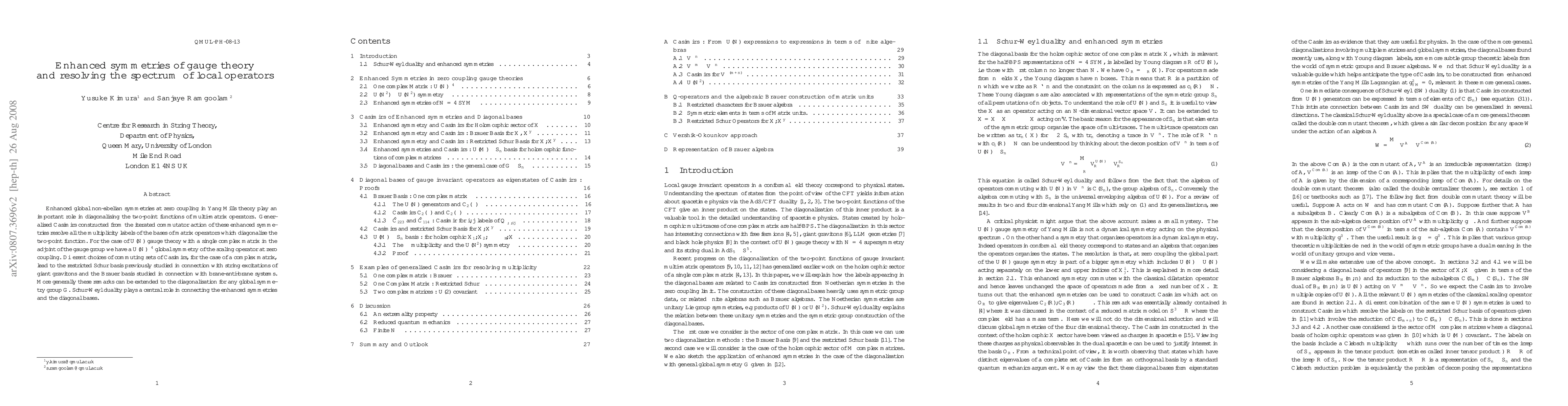 This paper explores enhanced global non-abelian symmetries in Yang-Mills theory that simplify the diagonalisation of multi-matrix operators. It demonstrates how generalised Casimirs derived from these symmetries resolve the operator spectra, particularly in U(N) gauge theory, and highlights the role of Schur-Weyl duality in this process.
