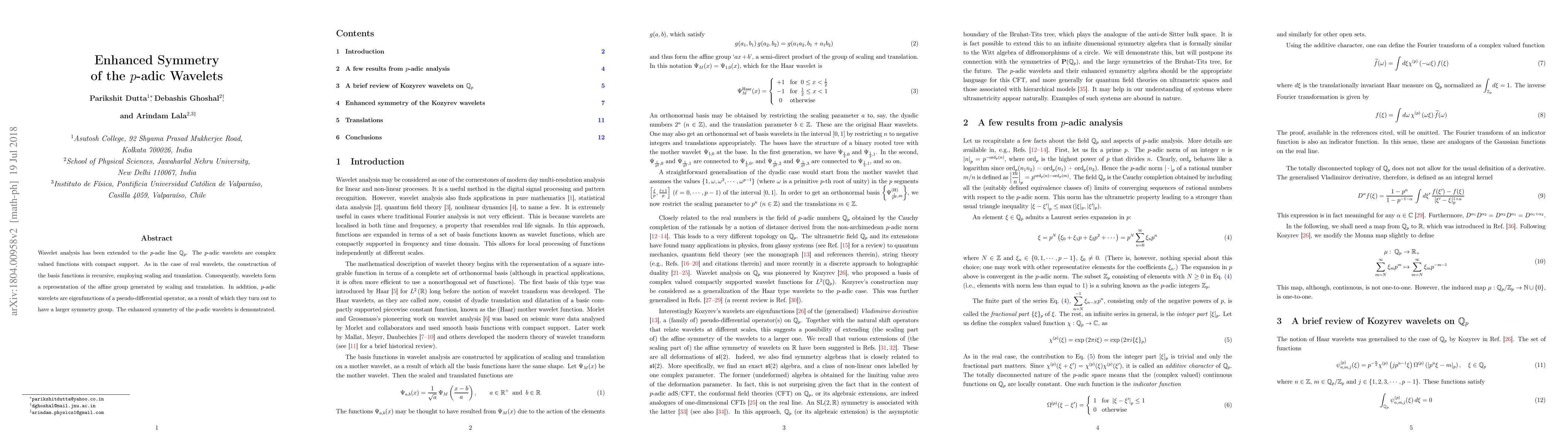 This paper explores the construction and enhanced symmetry of $p$-adic wavelets, which are complex functions with compact support on the $p$-adic line $\mathbb{Q}_p$. These wavelets exhibit a larger symmetry group due to being eigenfunctions of a pseudo-differential operator.