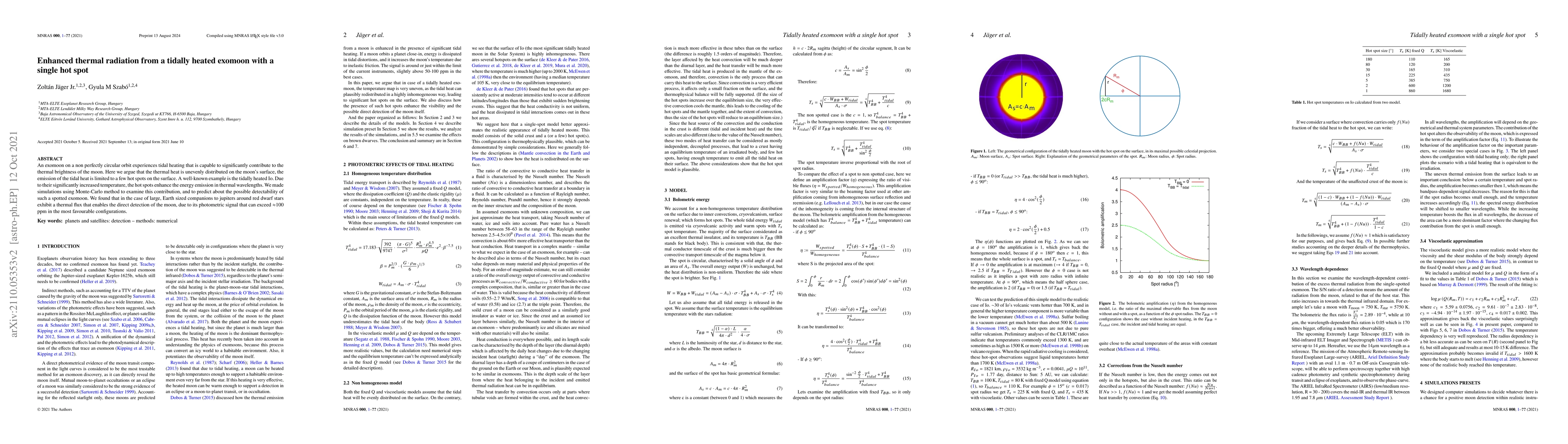 This paper investigates the thermal radiation from a tidally heated exomoon with unevenly distributed heat concentrated in a few hot spots. Simulations predict that large, Earth-sized moons around red dwarf stars could emit a detectable thermal flux, potentially exceeding 100 ppm in favorable configurations.