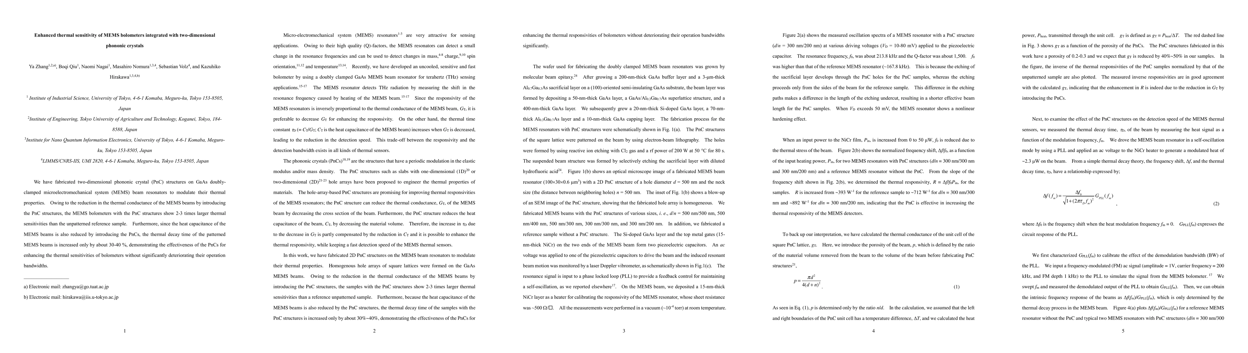 This study fabricates MEMS bolometers with integrated two-dimensional phononic crystal structures on GaAs beams, significantly enhancing their thermal sensitivity by 2-3 times compared to unpatterned samples, without substantially affecting their operational bandwidths.