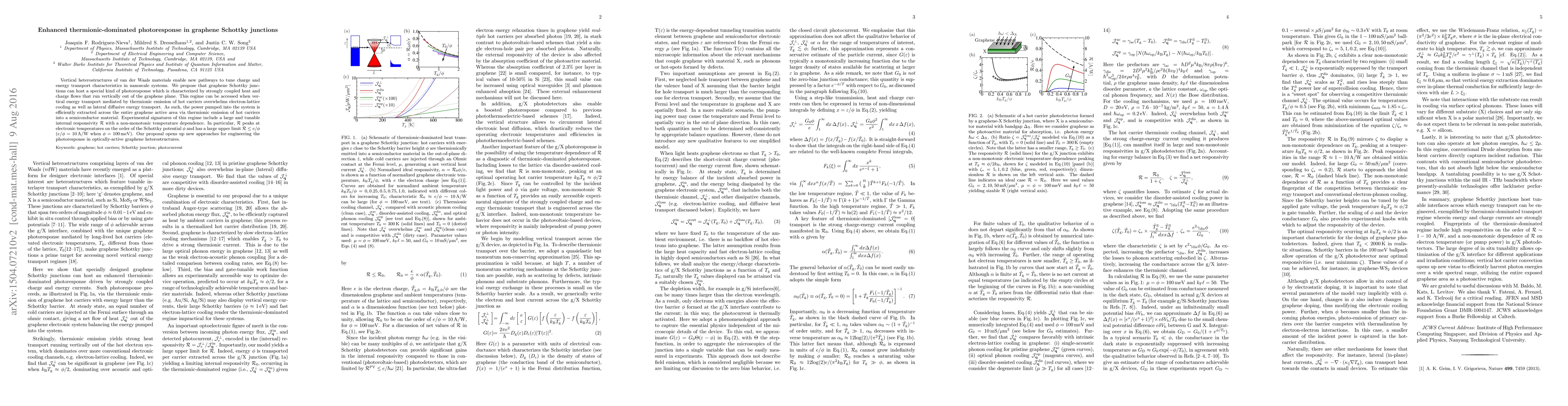 Vertical heterostructures of van der Waals materials enable new pathways to tune charge and energy transport characteristics in nanoscale systems. We propose that graphene Schottky junctions can host a special kind of photoresponse which is characterized by strongly coupled heat and charge flows that run vertically out of the graphene plane. This regime can be accessed when vertical energy transport mediated by thermionic emission of hot carriers overwhelms electron-lattice cooling as well as lateral diffusive energy transport. As such, the power pumped into the system is efficiently extracted across the entire graphene active area via thermionic emission of hot carriers into a semiconductor material. Experimental signatures of this regime include a large and tunable internal responsivity ${\cal R}$ with a non-monotonic temperature dependence. In particular, ${\cal R}$ peaks at electronic temperatures on the order of the Schottky potential $\phi$ and has a large upper limit ${\cal R} \le e/\phi$ ($e/\phi=10\,{\rm A/W}$ when $\phi = 100\,{\rm meV}$). Our proposal opens up new approaches for engineering the photoresponse in optically-active graphene heterostructures.