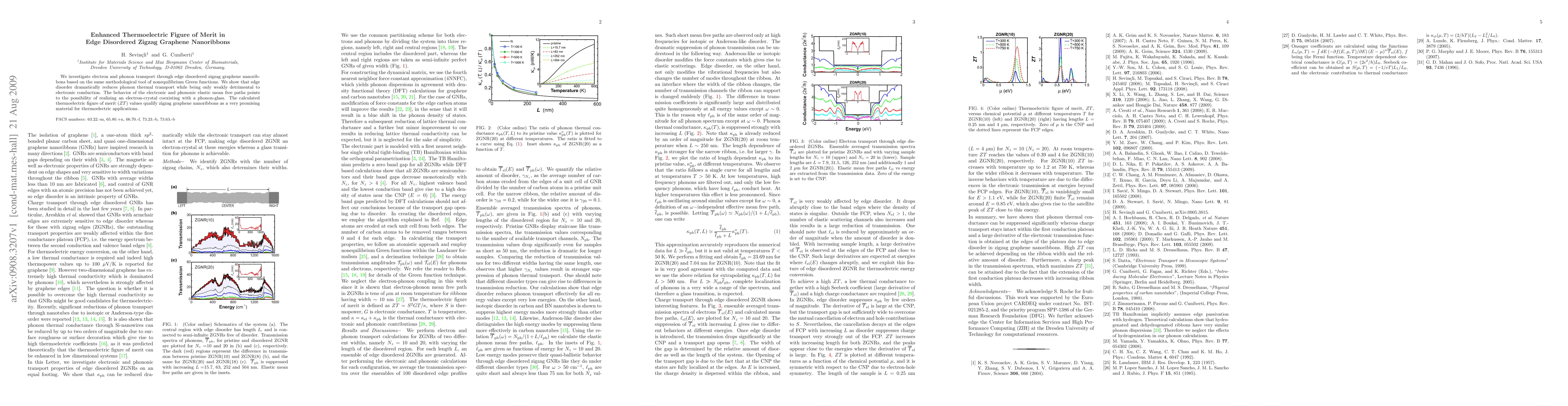 The paper presents a detailed analysis of electron and phonon transport in edge disordered ZGNRs using nonequilibrium Green functions, providing insights into the potential of these nanoribbons for thermoelectric applications.