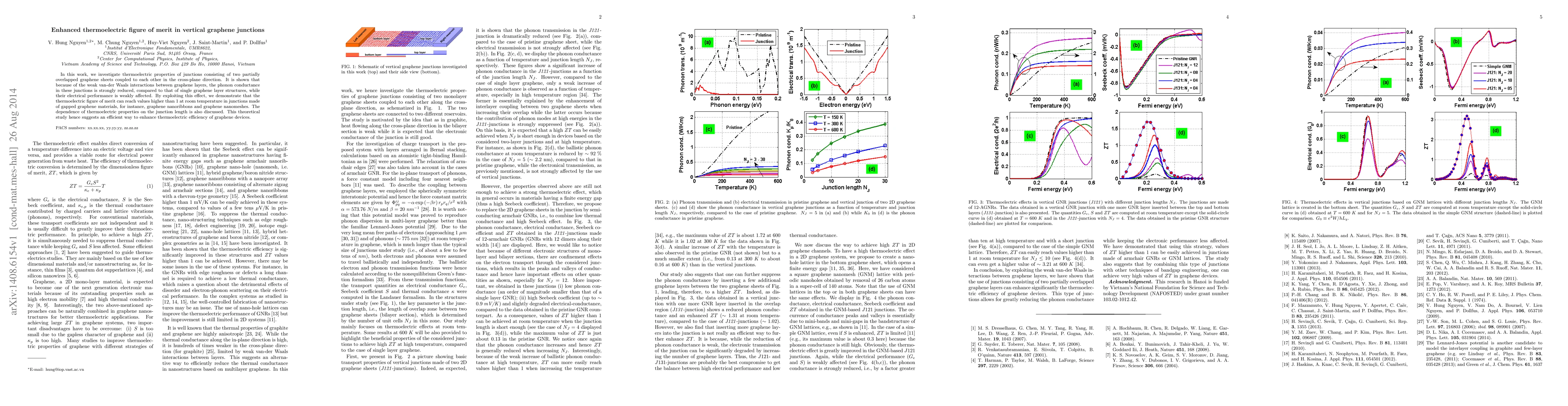 This study demonstrates that vertical graphene junctions exhibit an enhanced thermoelectric figure of merit due to reduced phonon conductance from weak van-der Waals interactions, while maintaining electrical performance. The research highlights that graphene nanoribbons and nanomeshes can achieve a thermoelectric figure of merit exceeding 1 at room temperature.