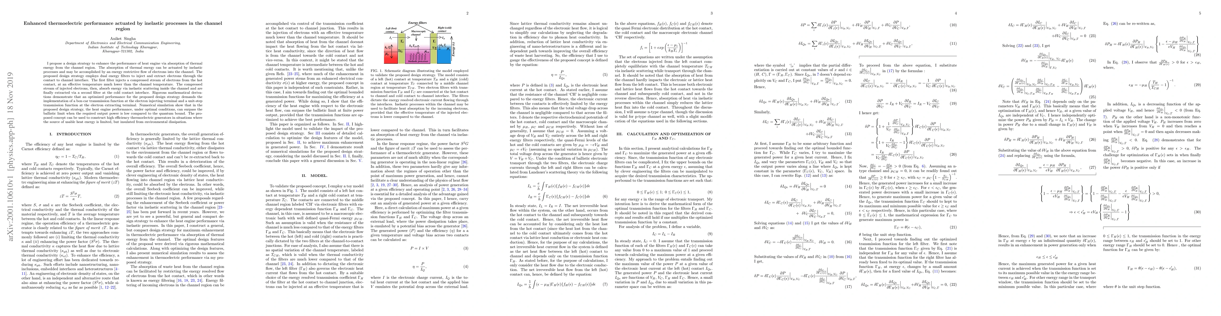 Researchers propose a design strategy to enhance thermoelectric performance by absorbing thermal energy from a channel region through inelastic processes. This approach can lead to high efficiency thermoelectric generators with limited heat source.