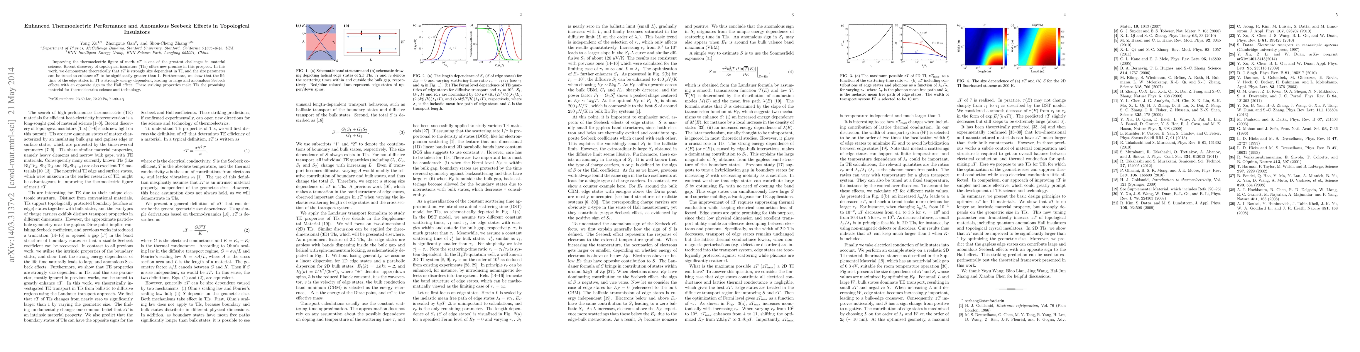 Improving the thermoelectric figure of merit zT is one of the greatest challenges in material science. Recent discovery of topological insulators (TIs) offers new promise in this prospect. In this work, we demonstrate theoretically that zT is strongly size dependent in TI, and the size parameter can be tuned to enhance zT to be significantly greater than 1. Furthermore, we show that the life time of the edge states in TI is strongly energy dependent, leading to large and anomalous Seebeck effects with an opposite sign to the Hall effect. These striking properties make TIs the promising material for thermoelectrics science and technology.