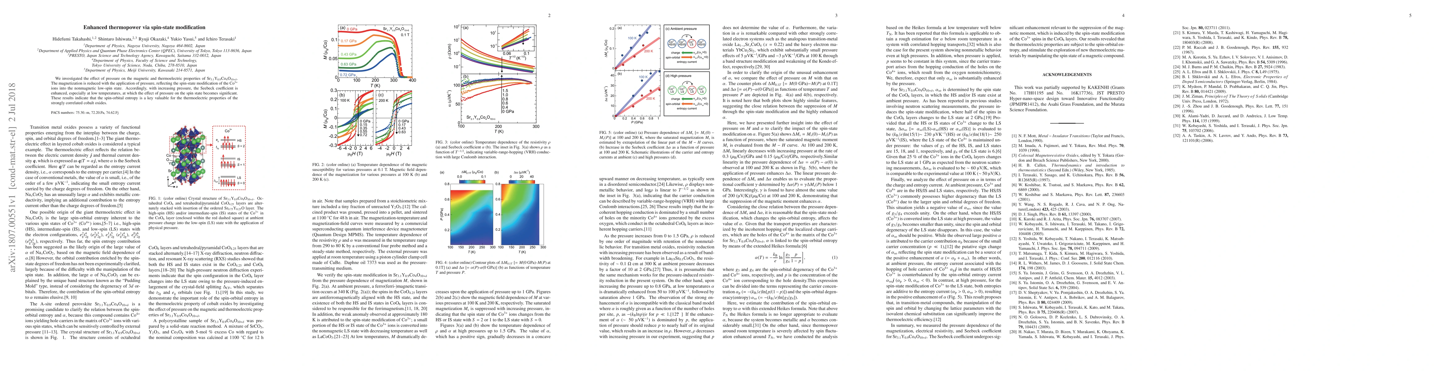We investigated the effect of pressure on the magnetic and thermoelectric properties of Sr$_{3.1}$Y$_{0.9}$Co$_{4}$O$_{10+\delta }$. The magnetization is reduced with the application of pressure, reflecting the spin-state modification of the Co$^{3+}$ ions into the nonmagnetic low-spin state. Accordingly, with increasing pressure, the Seebeck coefficient is enhanced, especially at low temperatures, at which the effect of pressure on the spin state becomes significant. These results indicate that the spin-orbital entropy is a key valuable for the thermoelectric properties of the strongly correlated cobalt oxides.
