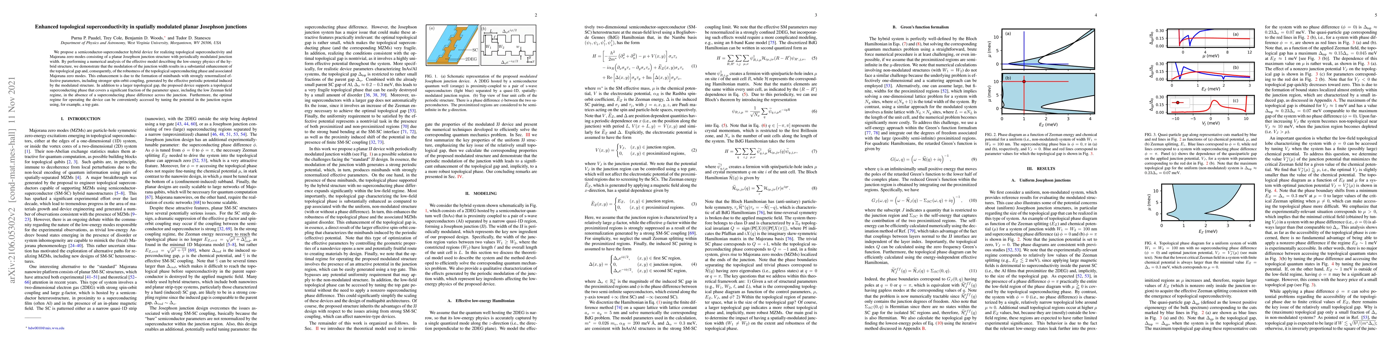 This paper proposes a semiconductor-superconductor hybrid device featuring a spatially modulated planar Josephson junction to enhance topological superconductivity and Majorana zero modes. Numerical analysis shows that junction width modulation increases the topological gap and robustness, due to miniband formation and stronger spin-orbit coupling, enabling a broader operational parameter space.
