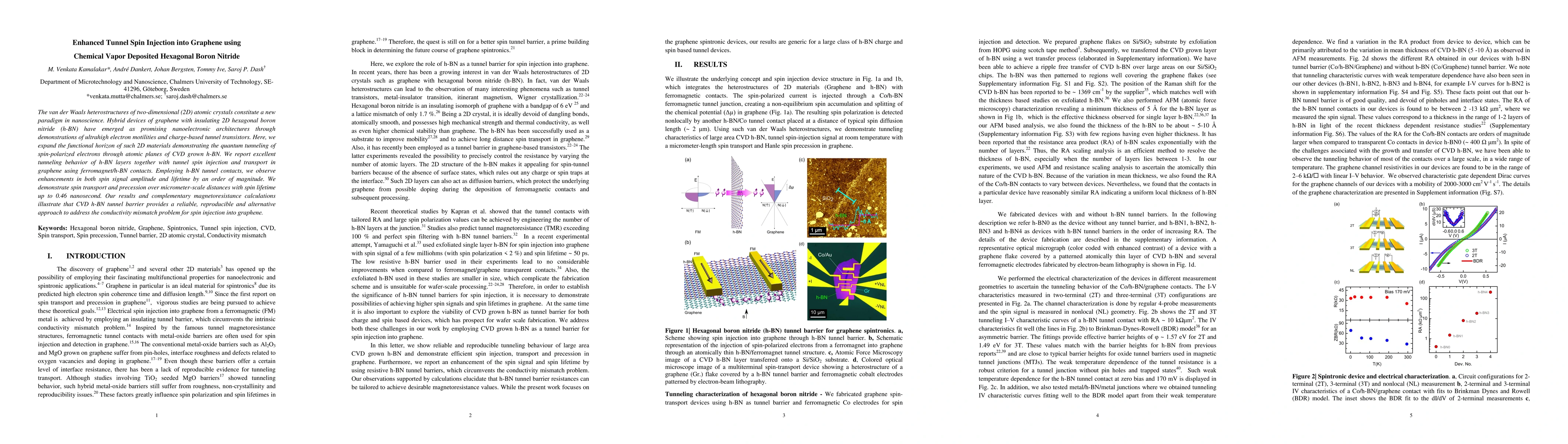 This paper investigates enhanced spin injection into graphene via chemical vapor deposited hexagonal boron nitride (h-BN) tunnel contacts, achieving significant improvements in spin signal amplitude and lifetime, demonstrating spin transport over micrometer distances, and offering a reliable solution to conductivity mismatch issues in spintronics.