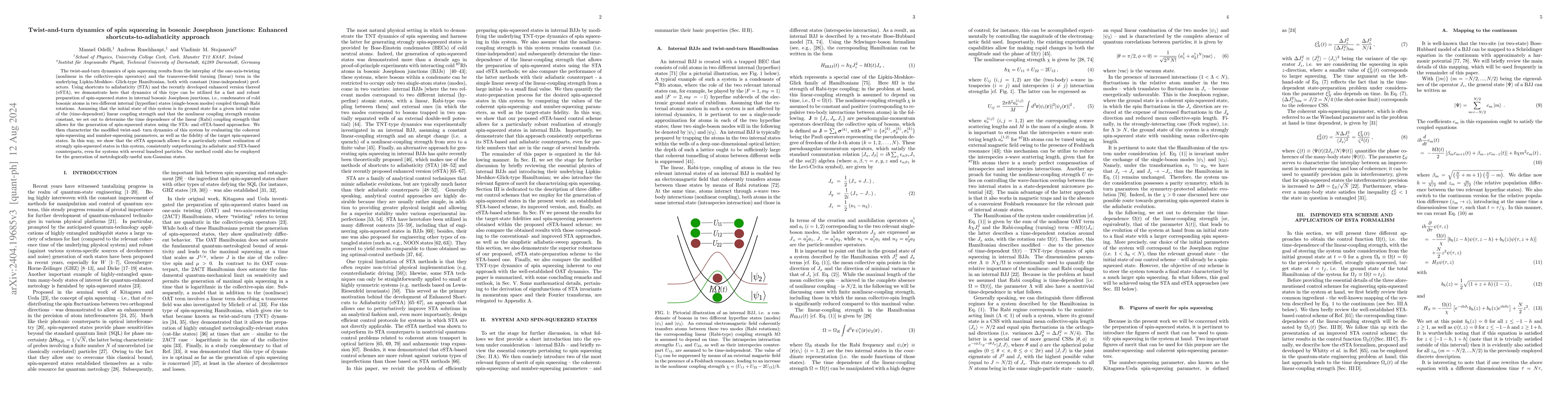This paper explores the use of enhanced shortcuts to adiabaticity (eSTA) to rapidly and robustly prepare spin-squeezed states in internal bosonic Josephson junctions. By employing eSTA, the authors demonstrate superior performance over standard adiabatic and STA methods in generating spin-squeezed states, as evidenced by their coherence and fidelity metrics.