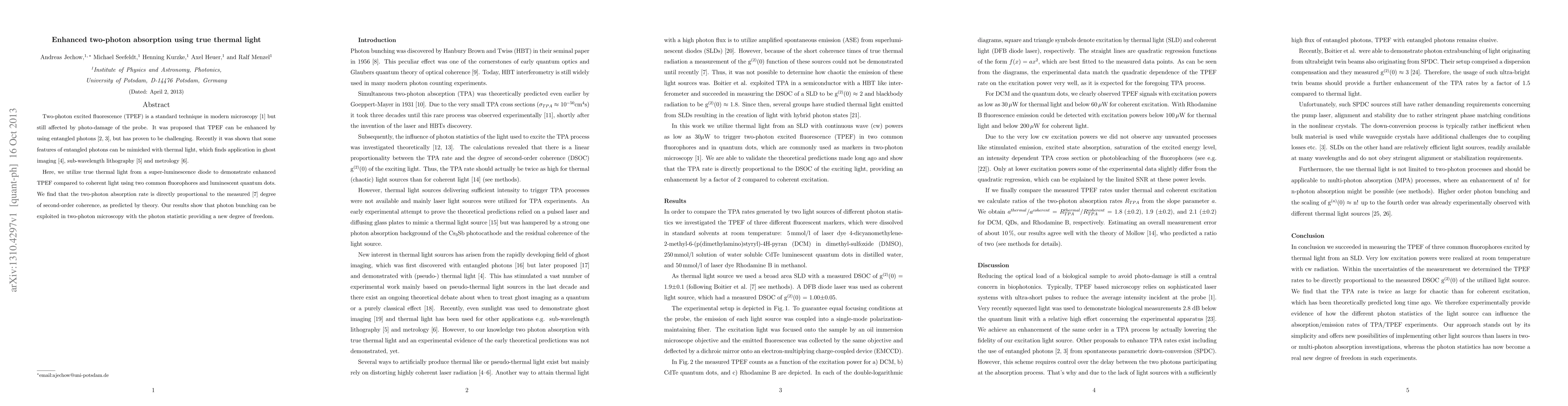 This paper demonstrates enhanced two-photon excited fluorescence (TPEF) using true thermal light from a super-luminescence diode, showing improved TPEF compared to coherent light. The study finds that the two-photon absorption rate correlates with the degree of second-order coherence, indicating that photon bunching can offer a new dimension in two-photon microscopy.