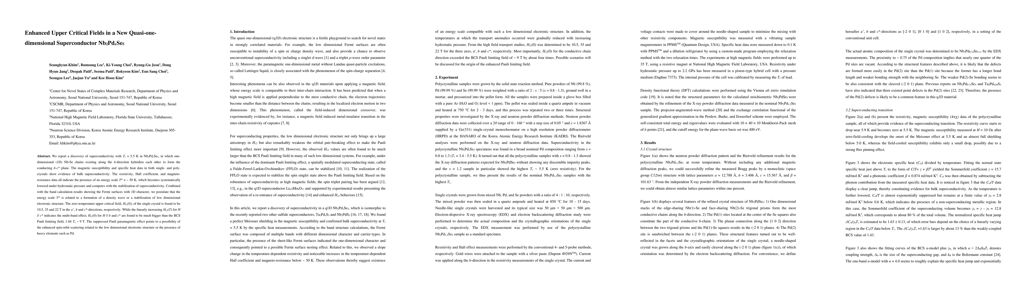 We report a discovery of superconductivity with Tc = 5.5 K in Nb2PdxSe5, in which one-dimensional (1D) Nb-Se chains existing along the b-direction hybridize each other to form the conducting b-c* plane. The magnetic susceptibility and specific heat data in both single- and poly-crystals show evidence of bulk superconductivity. The resistivity, Hall coefficient, and magneto-resistance data all indicate the presence of an energy scale T* = ~ 50 K, which becomes systematically lowered under hydrostatic pressure and competes with the stabilization of superconductivity. Combined with the band calculation results showing the Fermi surfaces with 1D character, we postulate that the energy scale T* is related to a formation of a density wave or a stabilization of low dimensional electronic structure. The zero temperature upper critical field, Hc2(0), of the single crystal is found to be 10.5, 35 and 22 T in the a', b and c*-directions, respectively. While the linearly increasing Hc2(T) for H // c* indicates the multi-band effect, Hc2(0) for H // b and c* are found to be much bigger than the BCS Pauli limiting field, 1.84 Tc ~ 9 T. The suppressed Pauli paramagnetic effect points to a possibility of the enhanced spin-orbit scattering related to the low dimensional electronic structure or the presence of heavy elements such as Pd.
