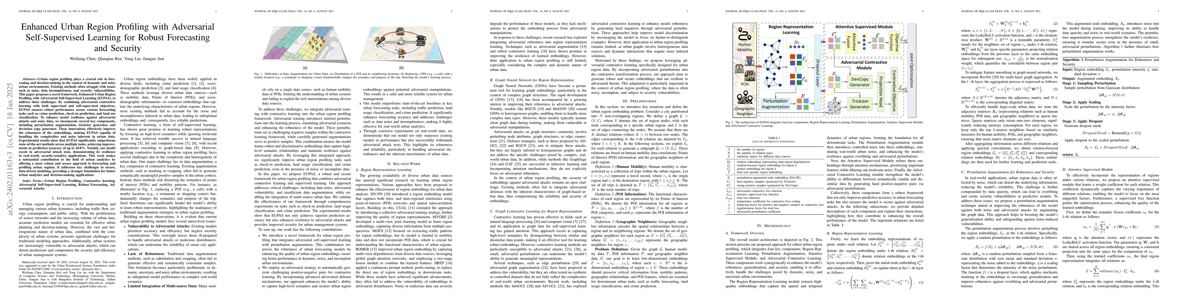 This paper proposes EUPAS, a self-supervised graph collaborative filtering model for urban region profiling, utilizing adversarial training and spatial perturbation augmentation to generate embeddings that capture fine-grained semantics from noisy urban data. Experiments show EUPAS outperforms existing methods in embedding quality.