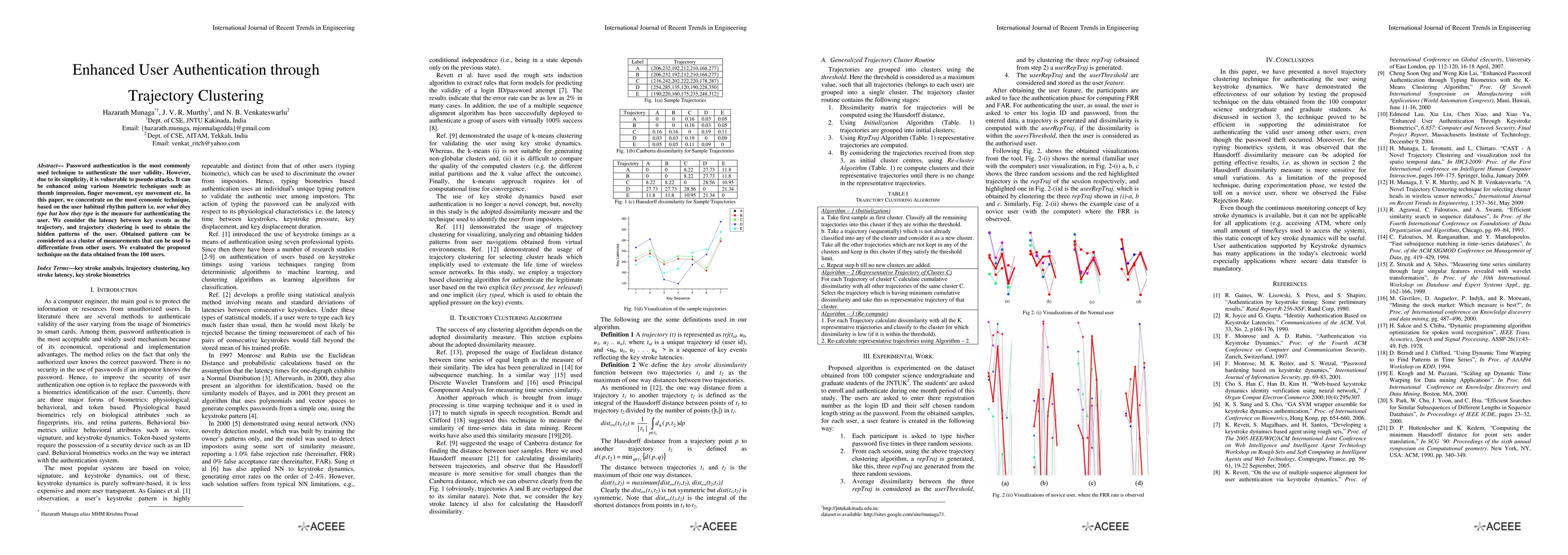 Password authentication is the most commonly used technique to authenticate the user validity. However, due to its simplicity, it is vulnerable to pseudo attacks. It can be enhanced using various biometric techniques such as thumb impression, finger movement, eye movement etc. In this paper, we concentrate on the most economic technique, based on the user habitual rhythm pattern i.e. not what they type but how they type is the measure for authenticating the user. We consider the latency between key events as the trajectory, and trajectory clustering is used to obtain the hidden patterns of the user. Obtained pattern can be considered as a cluster of measurements that can be used to differentiate from other users. We evaluated the proposed technique on the data obtained from the 100 users.