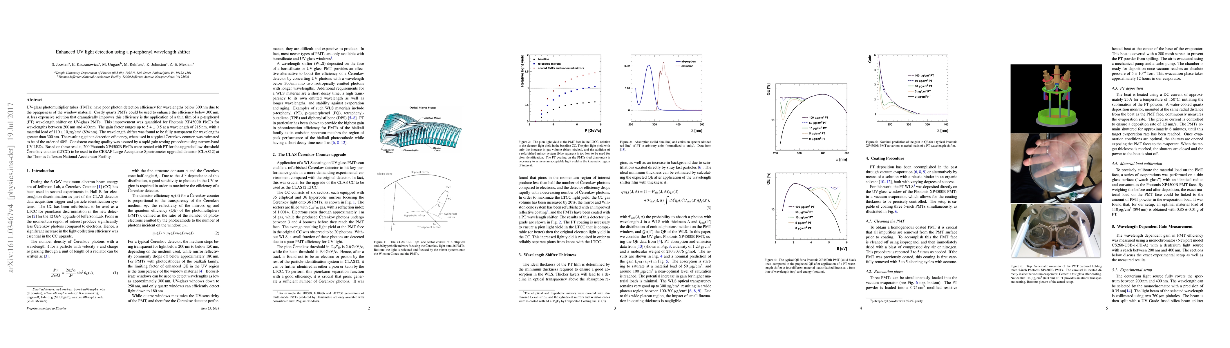 This study demonstrates that a thin film of p-terphenyl wavelength shifter significantly enhances the detection efficiency of UV-glass photomultiplier tubes for wavelengths below $300\,\text{nm}$, up to a gain factor of 5.4, and is fully transparent for wavelengths above $300\,\text{nm}$. This improvement is projected to boost the efficiency of Cherenkov counters by approximately 40%.