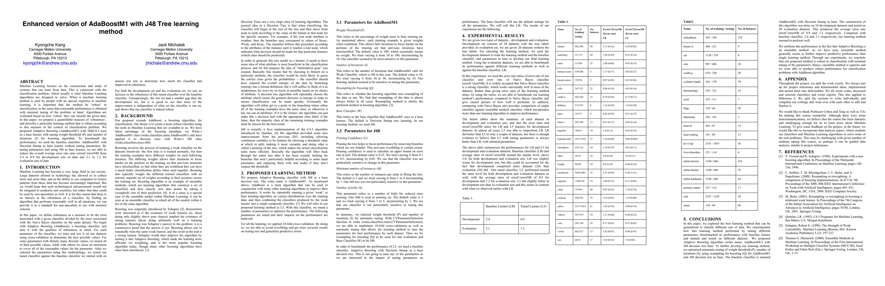 This paper proposes a robust version of AdaBoostM1 with J48 tree learning method, improving classification performance by 2-3 times compared to the baseline algorithm.