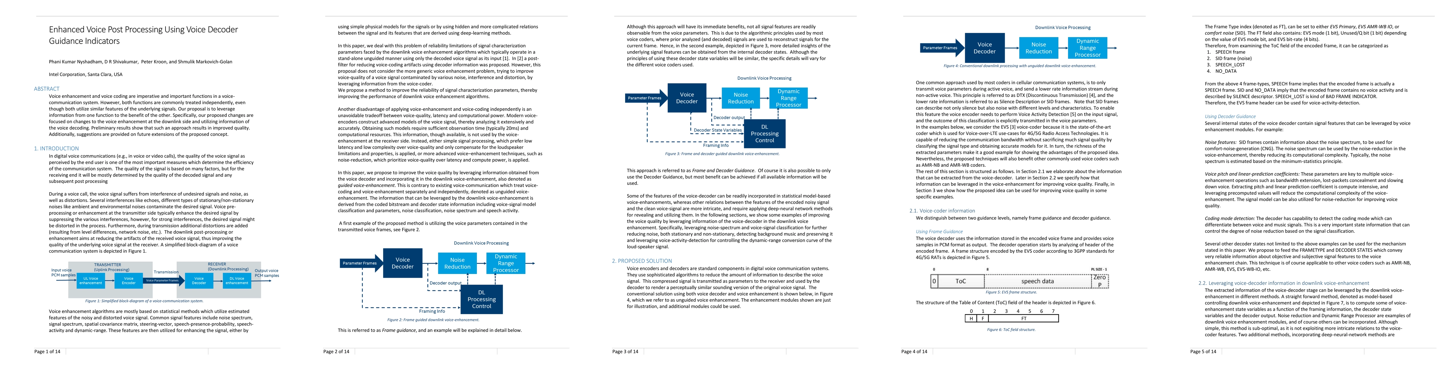 Voice enhancement and voice coding are imperative and important functions in a voice-communication system. However, both functions are commonly treated independently, even though both utilize similar features of the underlying signals. Our proposal is to leverage information from one function to the benefit of the other. Specifically, our proposed changes are focused on changes to the voice enhancement at the downlink side and utilizing information of the voice decoding. Preliminary results show that such an approach results in improved quality. Additionally, suggestions are provided on future extensions of the proposed concept.