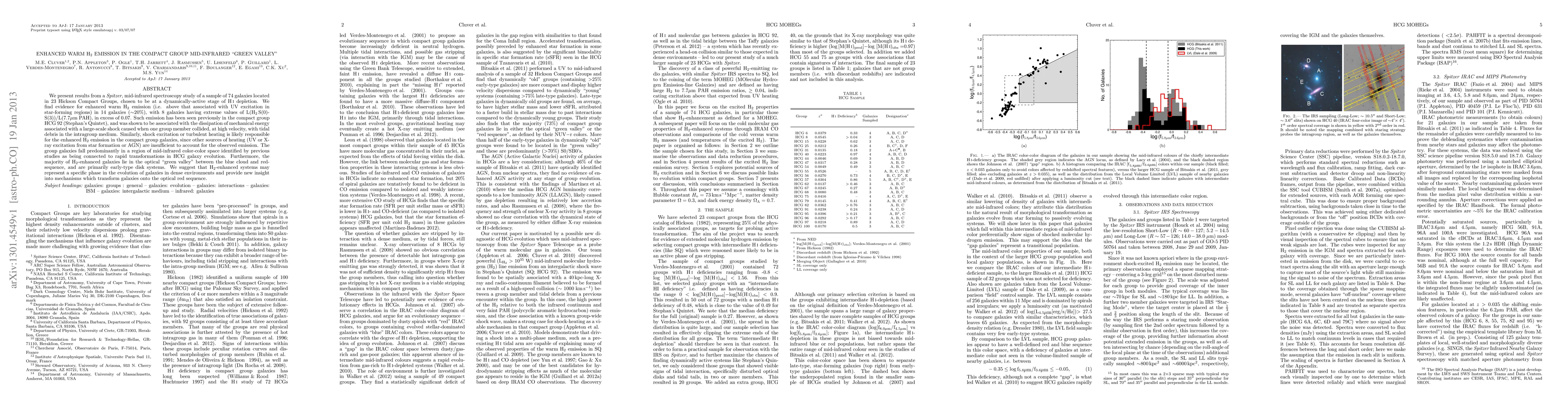 We present results from a Spitzer, mid-infrared spectroscopy study of a sample of 74 galaxies located in 23 Hickson Compact Groups, chosen to be at a dynamically-active stage of HI depletion. We find evidence for enhanced warm H2 emission (i.e. above that associated with UV excitation in star-forming regions) in 14 galaxies (~20%), with 8 galaxies having extreme values of L(H2 S(0)-S(3))/L(7.7micron PAH), in excess of 0.07. Such emission has been seen previously in the compact group HCG 92 (Stephan's Quintet), and was shown to be associated with the dissipation of mechanical energy associated with a large-scale shock caused when one group member collided, at high velocity, with tidal debris in the intragroup medium. Similarly, shock excitation or turbulent heating is likely responsible for the enhanced H2 emission in the compact group galaxies, since other sources of heating (UV or X-ray excitation from star formation or AGN) are insufficient to account for the observed emission. The group galaxies fall predominantly in a region of mid-infrared color-color space identified by previous studies as being connected to rapid transformations in HCG galaxy evolution. Furthermore, the majority of H2-enhanced galaxies lie in the optical "green valley" between the blue cloud and red-sequence, and are primarily early-type disk systems. We suggest that H2-enhanced systems may represent a specific phase in the evolution of galaxies in dense environments and provide new insight into mechanisms which transform galaxies onto the optical red sequence.