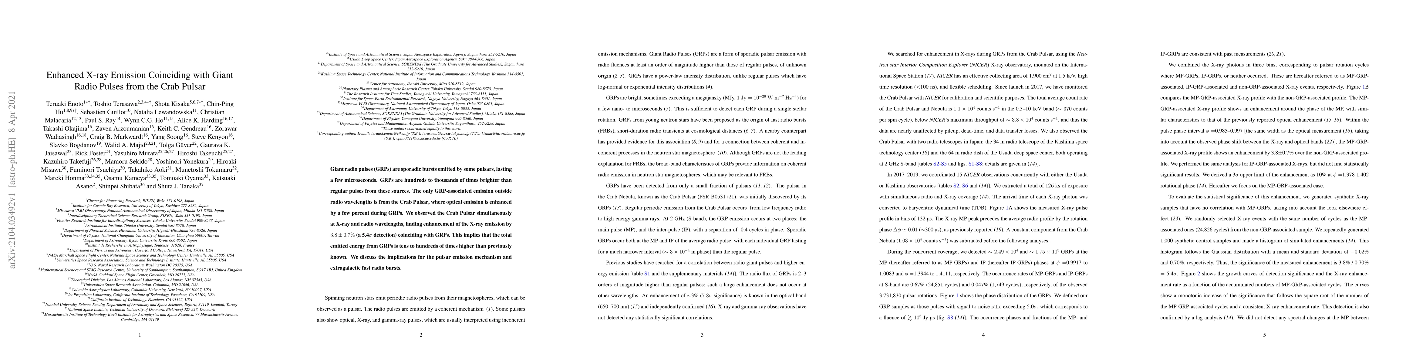 The study reveals an enhancement of X-ray emission by $3.8\pm0.7\%$ during giant radio pulses from the Crab Pulsar, suggesting the total energy output from these pulses is significantly higher than previously estimated. This finding has implications for understanding pulsar emission mechanisms and the nature of extragalactic fast radio bursts.