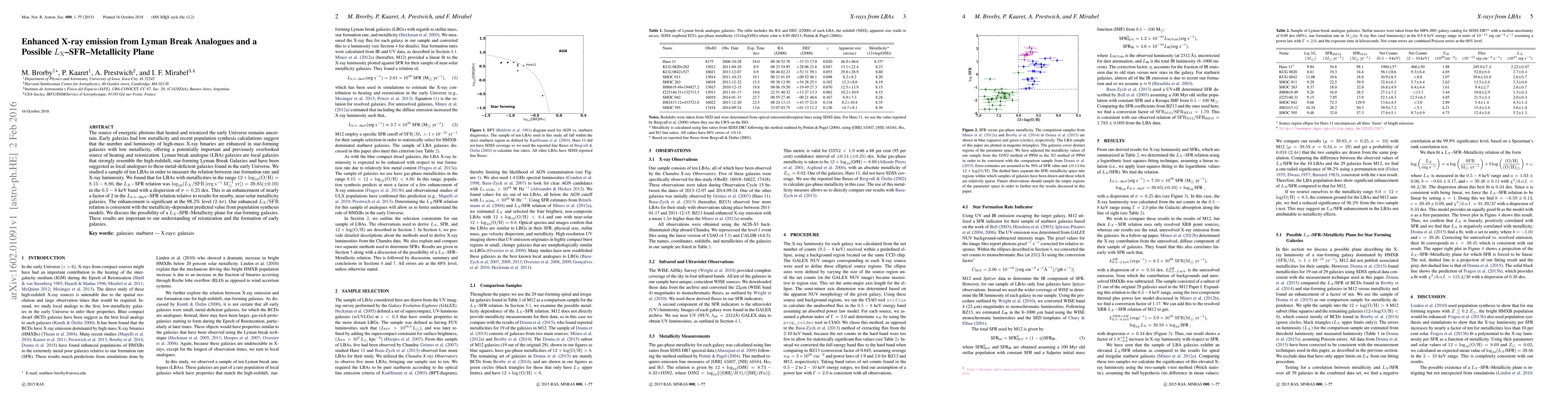 This paper investigates the enhanced X-ray emission from Lyman Break Analogue galaxies, finding a significant increase in the X-ray luminosity relative to star formation rate in low-metallicity galaxies. The study suggests a potential $L_{\rm X}$--SFR--Metallicity plane, which could impact our understanding of early Universe reionization.