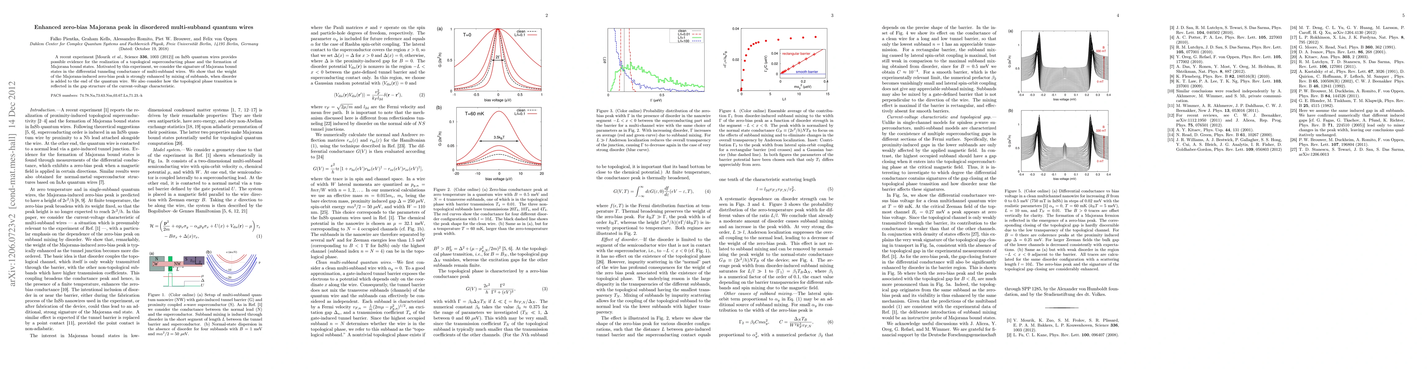 This research investigates the impact of disorder on multi-subband quantum wires, showing that mixing of subbands significantly enhances the zero-bias Majorana peak in differential tunneling conductance. It also explores how the topological phase transition influences the gap structure in current-voltage characteristics.