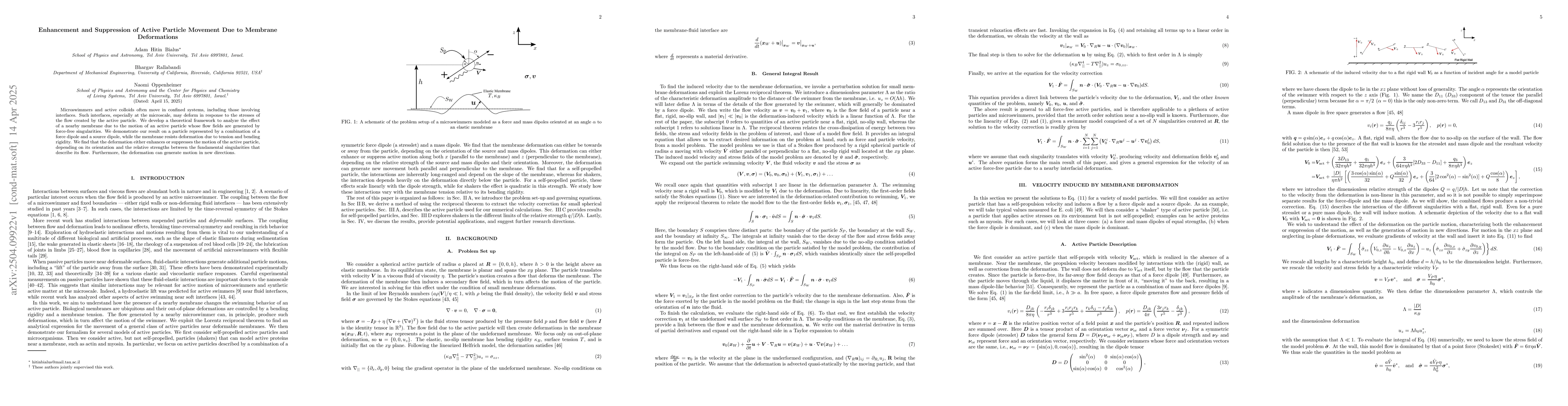 The research develops a theoretical framework to analyze the effect of a nearby membrane on the motion of an active particle, considering flow fields generated by force-free singularities.