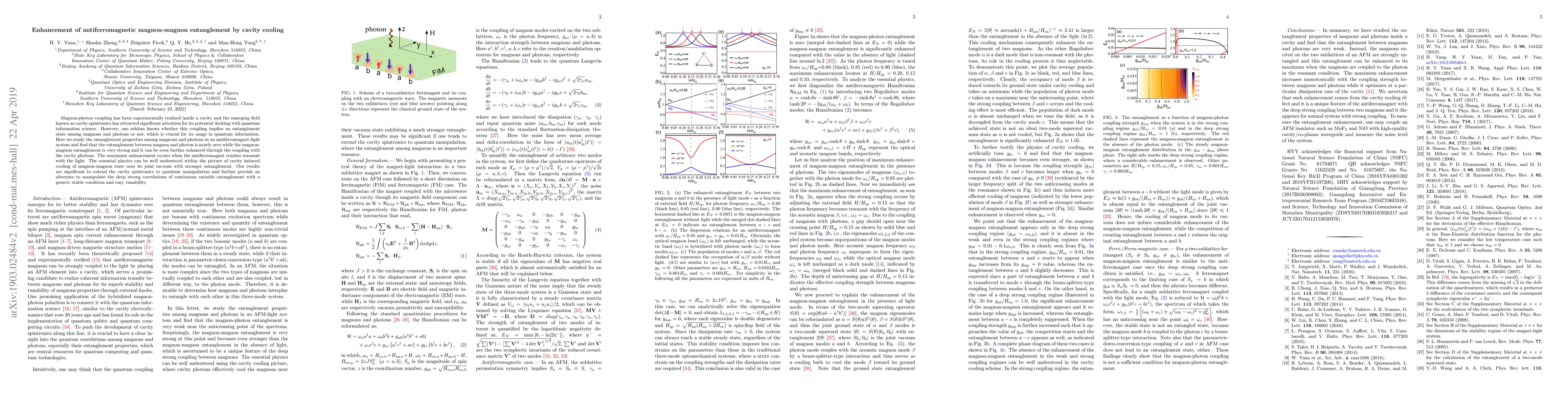 The paper presents a detailed theoretical analysis of magnon-magnon entanglement enhancement in an antiferromagnet-light system, attributing the enhancement to cavity-induced cooling.