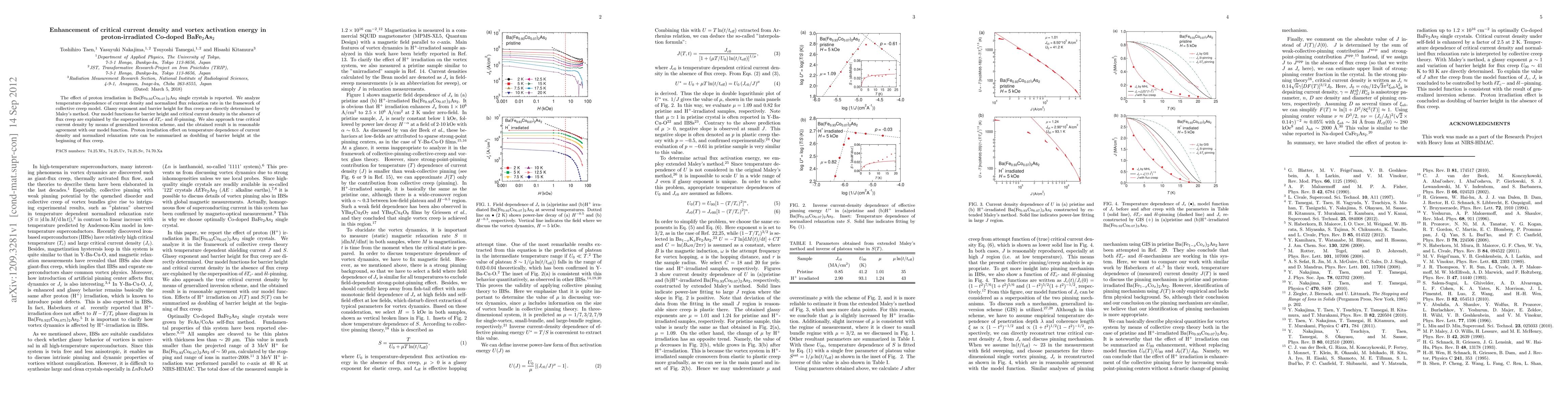The effect of proton irradiation in Ba(Fe0.93Co0.07)2As2 single crystals is reported. We analyze temperature dependence of current density and normalized flux relaxation rate in the framework of collective creep model. Glassy exponent and barrier height for flux creep are directly determined by Maley's method. Our model functions for barrier height and critical current density in the absence of flux creep are explained by the superposition of \deltaTc- and \deltal-pinning. We also approach true critical current density by means of generalized inversion scheme, and the obtained result is in reasonable agreement with our model function. Proton irradiation effect on temperature dependence of current density and normalized relaxation rate can be summarized as doubling of barrier height at the beginning of flux creep.