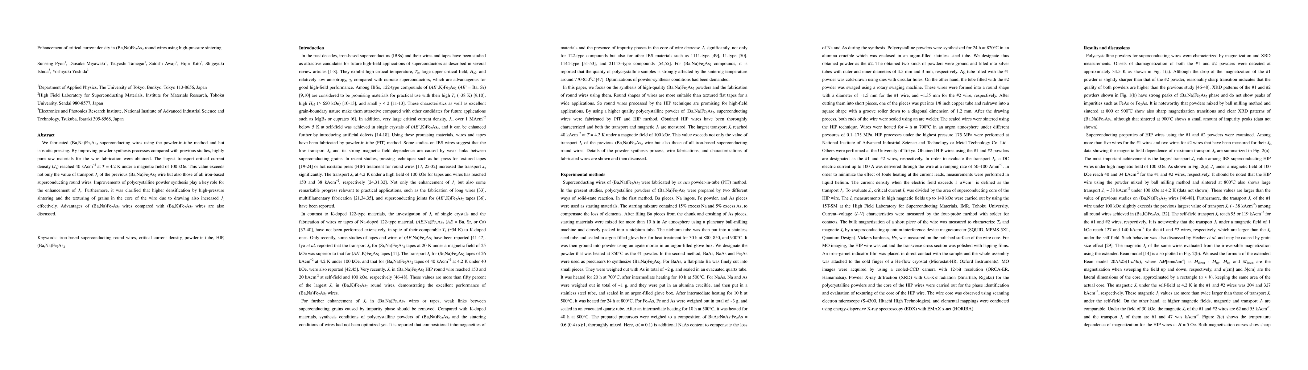 This paper reports on the fabrication of (Ba,Na)Fe2As2 superconducting wires using high-pressure sintering, achieving a critical current density of 40 kA/cm² at 4.2 K under 100 kOe, surpassing previous values. Enhanced Jc is attributed to improved powder synthesis and higher densification through high-pressure sintering.