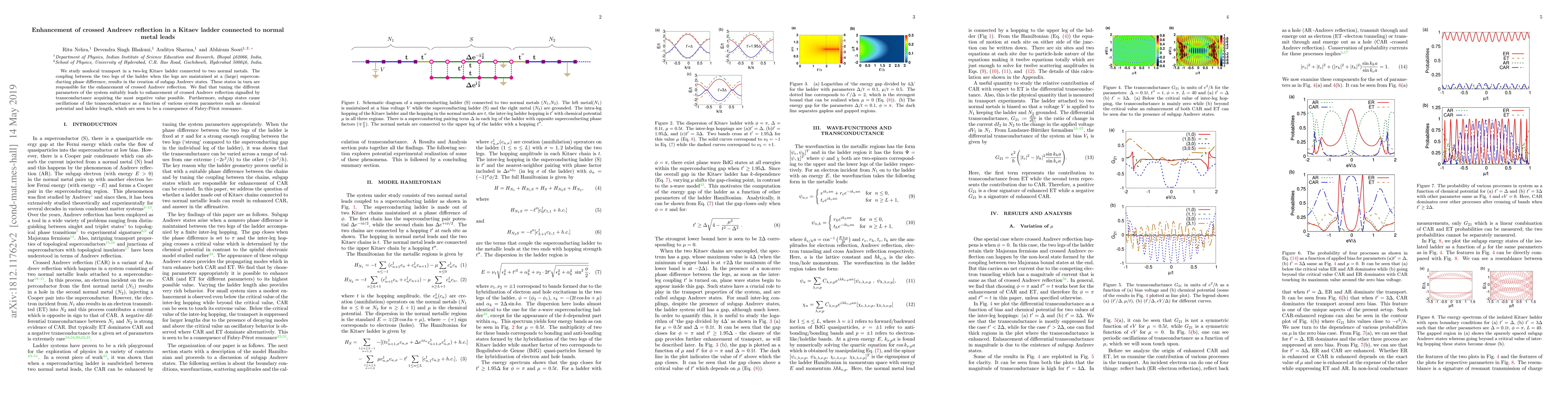 We study nonlocal transport in a two-leg Kitaev ladder connected to two normal metals. The coupling between the two legs of the ladder when the legs are maintained at a (large) superconducting phase difference, results in the creation of subgap Andreev states. These states in turn are responsible for the enhancement of crossed Andreev reflection. We find that tuning the different parameters of the system suitably leads to enhancement of crossed Andreev reflection signalled by transconductance acquiring the most negative value possible. Furthermore, subgap states cause oscillations of the transconductance as a function of various system parameters such as chemical potential and ladder length, which are seen to be a consequence of Fabry-P\'erot resonance.