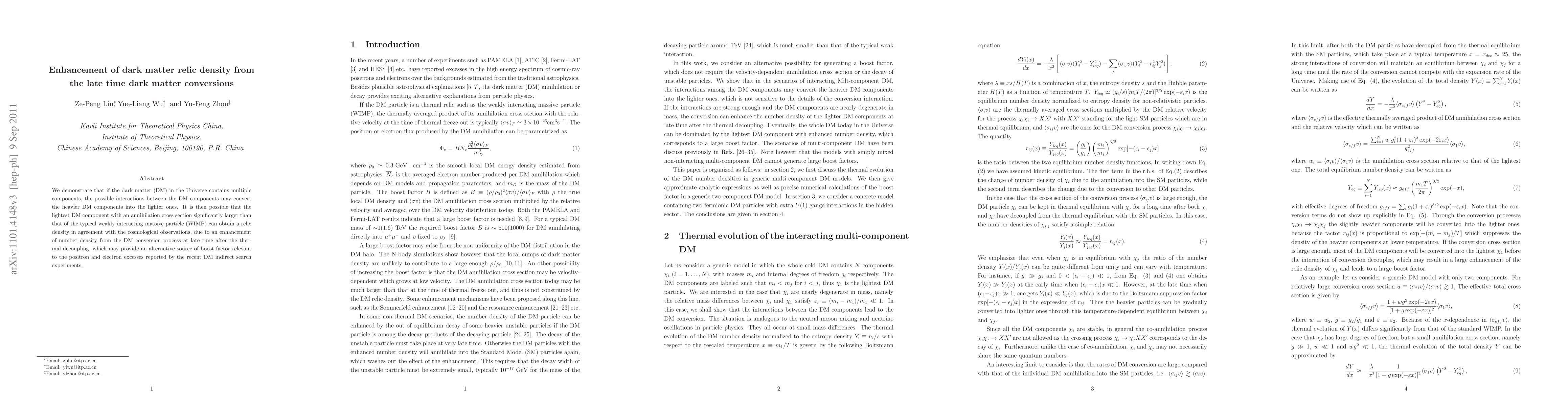 Researchers propose that dark matter conversions between multiple components could enhance the lightest DM component's relic density, providing an alternative explanation for excesses reported in recent indirect search experiments.