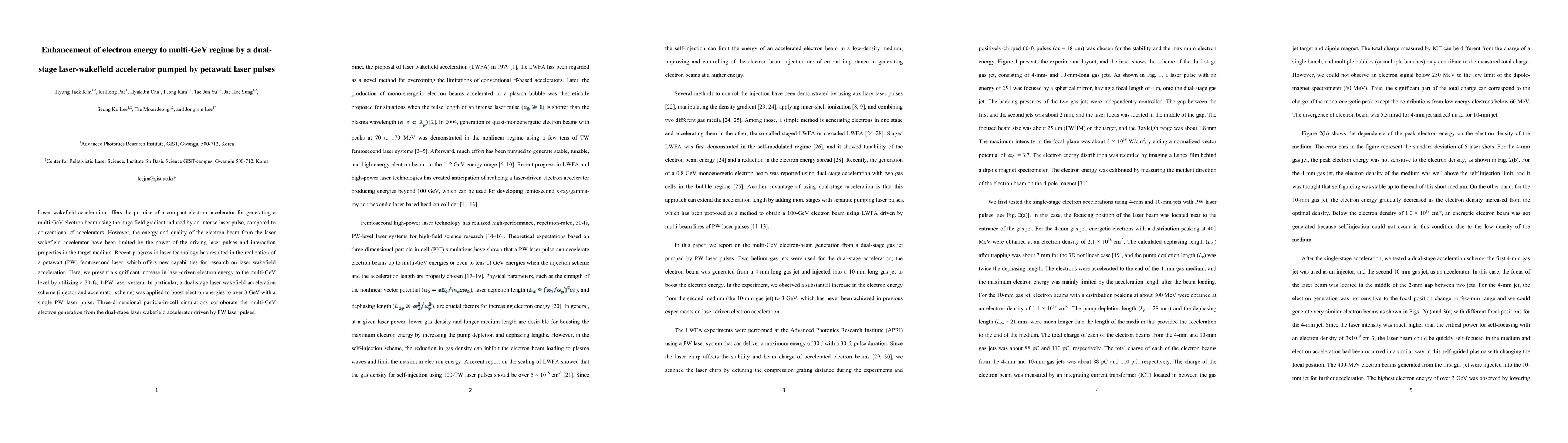 The paper presents an innovative dual-stage laser wakefield acceleration scheme, demonstrating multi-GeV electron energy generation using a single petawatt laser pulse.