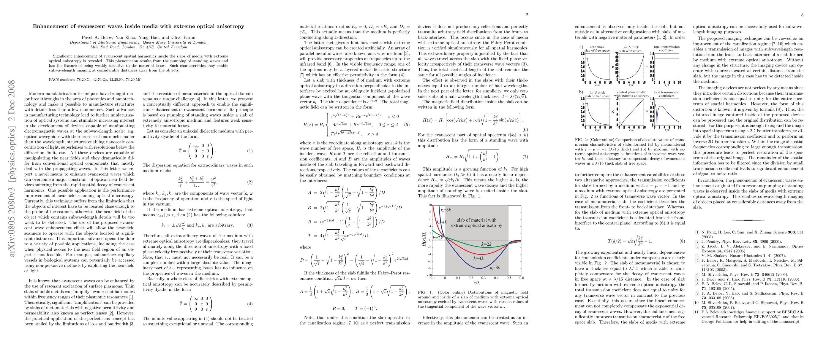 Significant enhancement of evanescent spatial harmonics inside the slabs of media with extreme optical anisotropy is revealed. This phenomenon results from the pumping of standing waves and has the feature of being weakly sensitive to the material losses. Such characteristics may enable subwavelength imaging at considerable distances away from the objects.