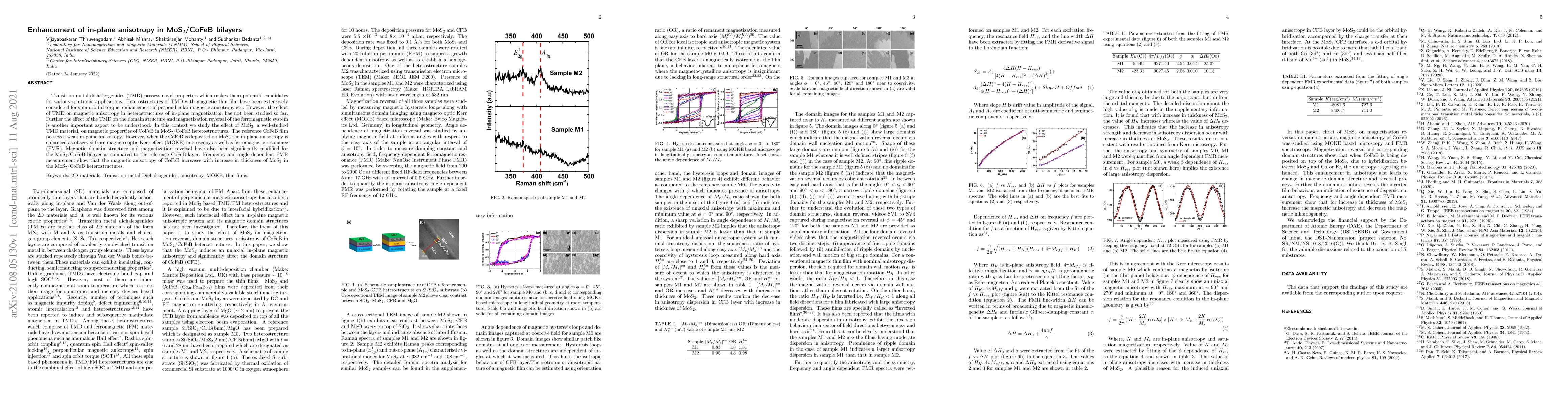 This paper investigates how MoS2 influences the in-plane magnetic anisotropy in MoS2/CoFeB bilayers, revealing significant enhancement compared to standalone CoFeB, as observed via MOKE and FMR. The study also finds that MoS2 modifies the magnetic domain structure and magnetization reversal behavior of CoFeB.