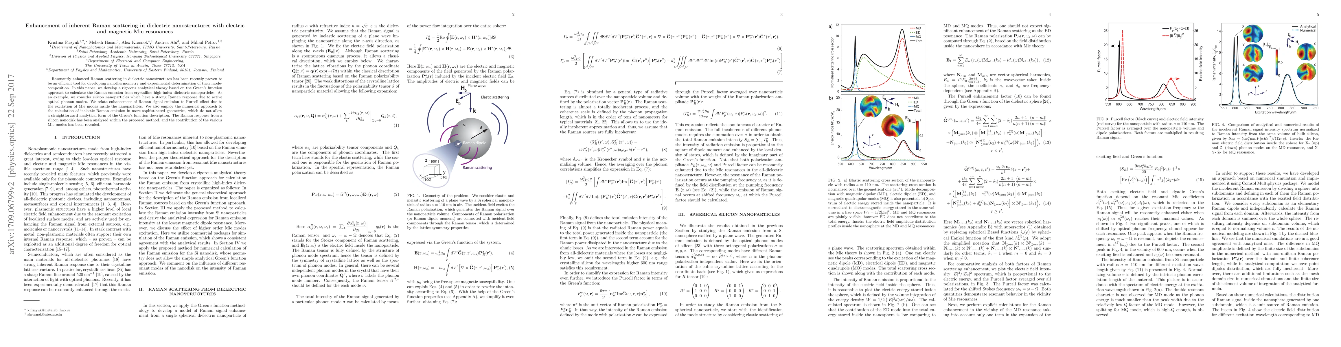 This paper develops an analytical theory to enhance Raman scattering in dielectric nanostructures, specifically silicon nanoparticles, by utilizing electric and magnetic Mie resonances. The study reveals the enhancement of Raman signal due to the Purcell effect and applies both analytical and numerical methods to analyze the Raman response in complex geometries.
