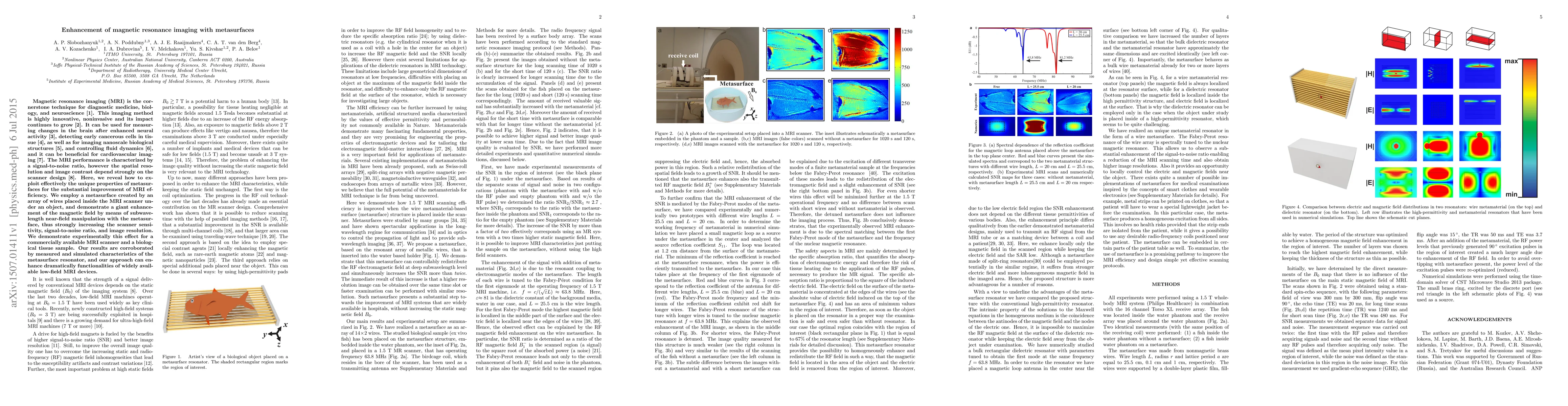 The research introduces metasurfaces to boost MRI efficiency, demonstrating enhanced magnetic field via subwavelength near-field manipulation. This results in increased scanner sensitivity, signal-to-noise ratio, and image resolution, with successful experimental validation on a commercial MRI scanner and biological tissue.