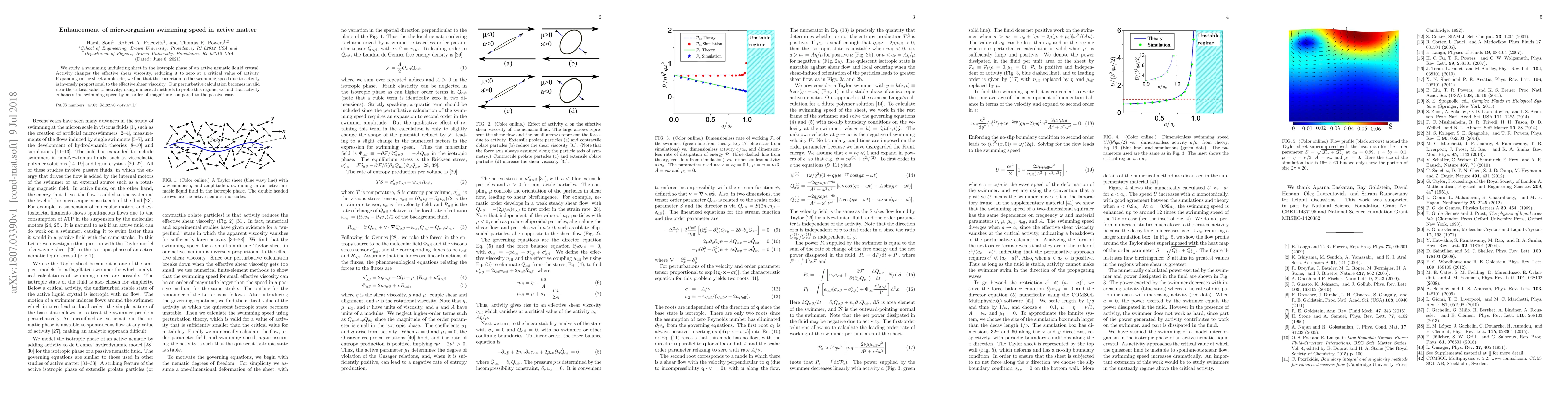 Researchers found that adding activity to a liquid crystal enhances microorganism swimming speed by an order of magnitude, making it move faster than without activity. This is surprising because activity typically reduces swimming speed.