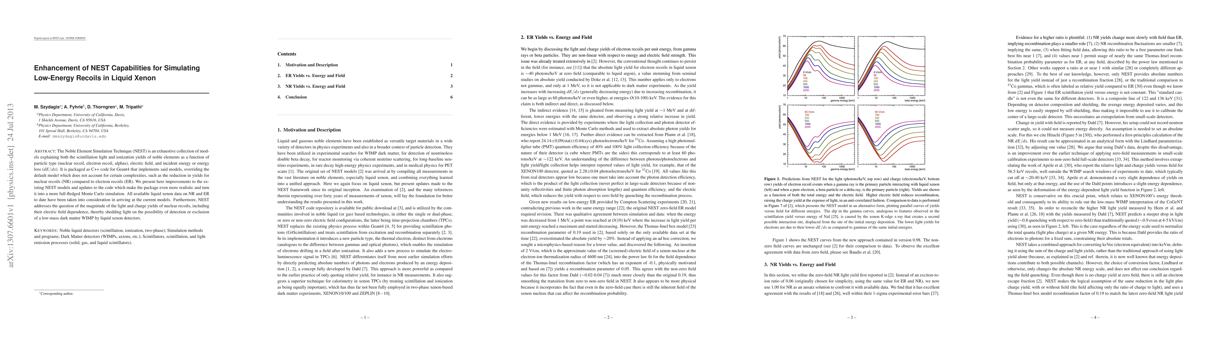 The Noble Element Simulation Technique (NEST) is an exhaustive collection of models explaining both the scintillation light and ionization yields of noble elements as a function of particle type (nuclear recoil, electron recoil, alphas), electric field, and incident energy or energy loss dE/dx. It is packaged as C++ code for Geant4 that implements said models, overriding the default model which does not account for certain complexities, such as the reduction in yields for nuclear recoils (NR) compared to electron recoils (ER). We present here improvements to the existing NEST models and updates to the code which make the package even more realistic and turn it into a more full-fledged Monte Carlo simulation. All available liquid xenon data on NR and ER to date have been taken into consideration in arriving at the current models. Furthermore, NEST addresses the question of the magnitude of the light and charge yields of nuclear recoils, including their electric field dependence, thereby shedding light on the possibility of detection or exclusion of a low-mass dark matter WIMP by liquid xenon detectors.
