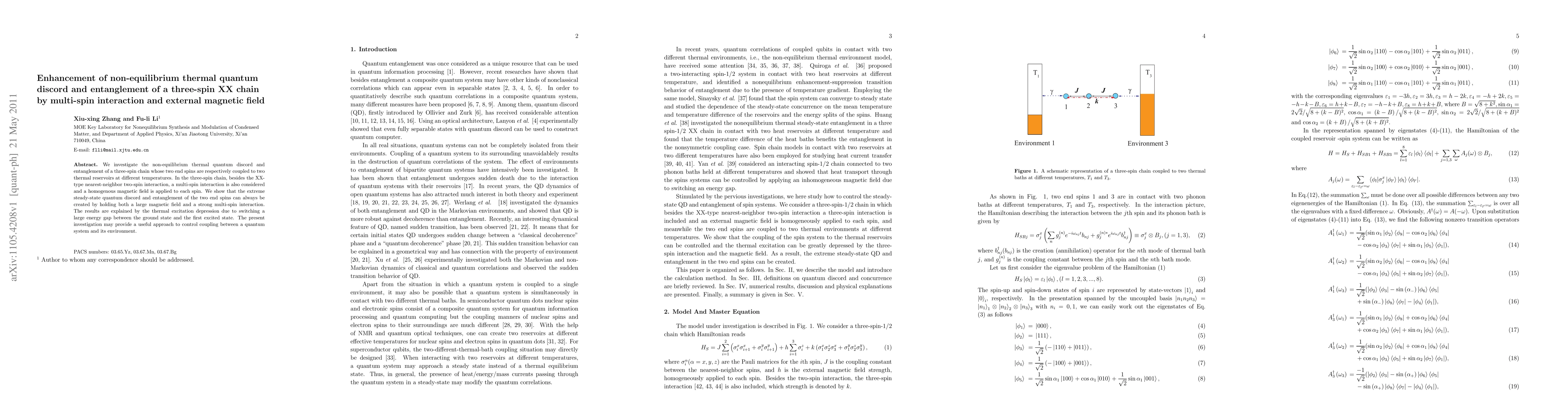 This study explores how non-equilibrium thermal quantum discord and entanglement in a three-spin XX chain can be enhanced through multi-spin interactions and external magnetic fields. The research demonstrates that a strong magnetic field and multi-spin interaction can create extreme steady-state quantum discord and entanglement, attributed to thermal excitation suppression via a large energy gap.