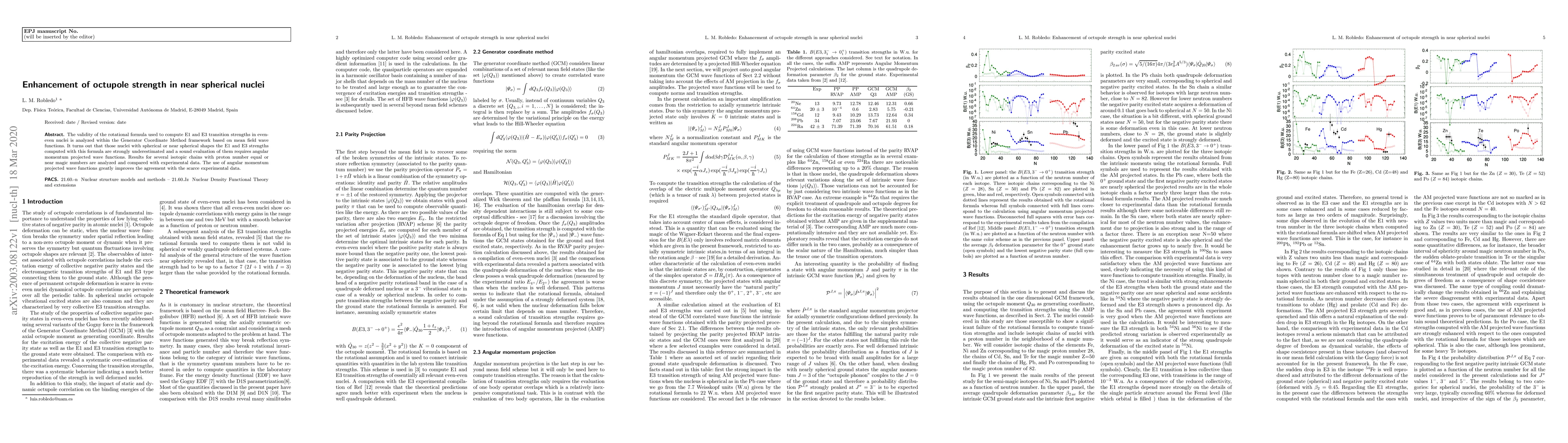 The validity of the rotational formula used to compute E1 and E3 transition strengths in even-even nuclei is analyzed within the Generator Coordinate Method framework based on mean field wave functions. It turns out that those nuclei with spherical or near spherical shapes the E1 and E3 strengths computed with this formula are strongly underestimated and a sound evaluation of them requires angular momentum projected wave functions. Results for several isotopic chains with proton number equal or near magic numbers are analyzed and compared with experimental data. The use of angular momentum projected wave functions greatly improves the agreement with the scarce experimental data.