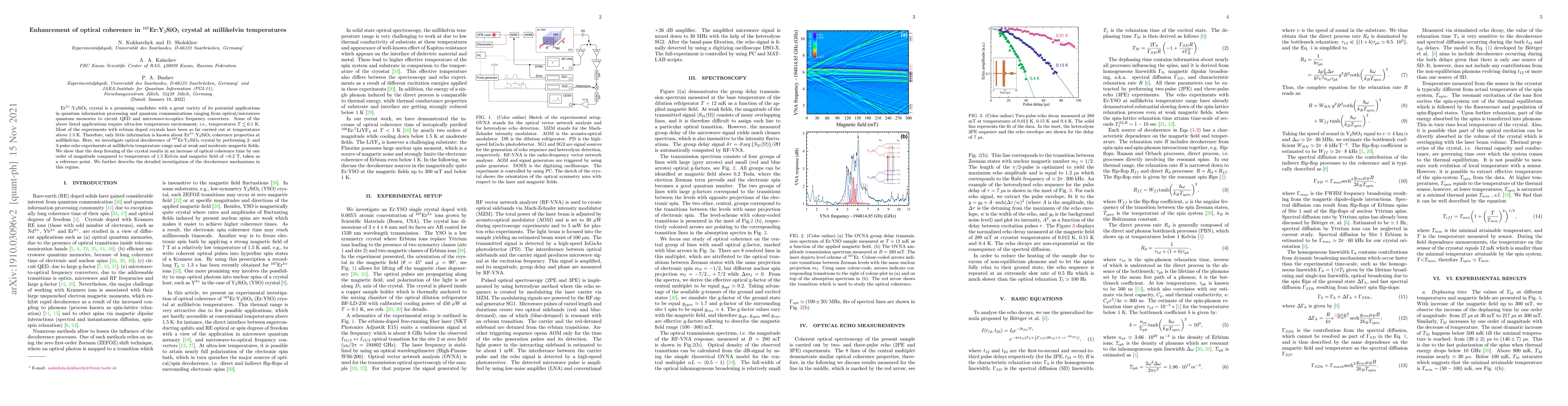 This paper investigates the enhancement of optical coherence in $^{167}$Er:Y$_2$SiO$_5$ crystals at sub-Kelvin temperatures, revealing a significant increase in coherence time by an order of magnitude compared to higher temperatures, and explores the decoherence mechanisms under these conditions.