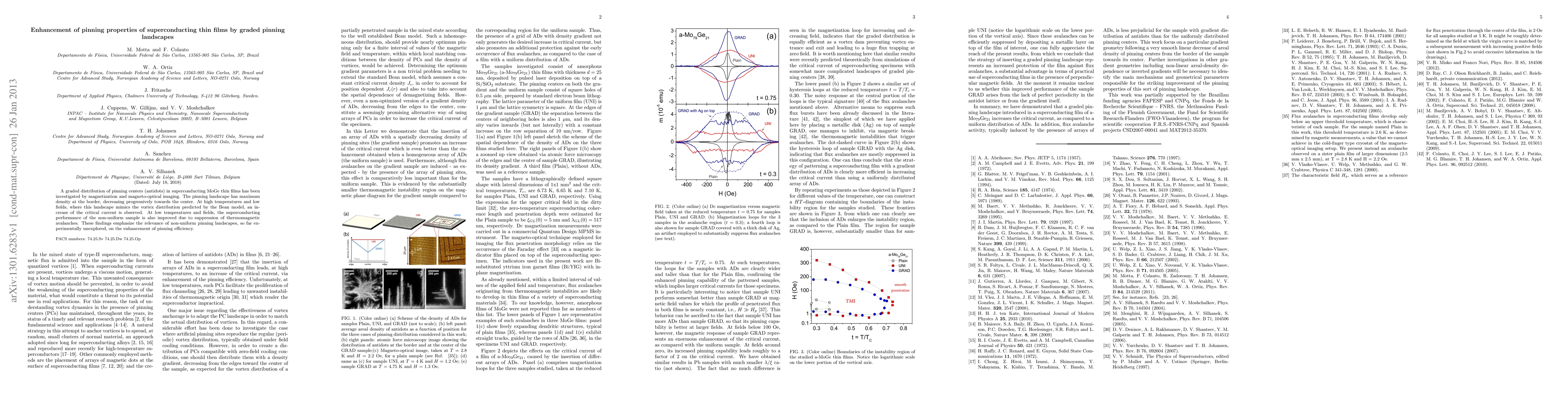 This study investigates graded pinning centers in MoGe superconducting thin films, showing enhanced critical current and improved performance at low temperatures and fields due to a non-uniform pinning landscape that suppresses thermomagnetic avalanches. The findings highlight the potential of non-uniform pinning structures to enhance superconducting pinning efficiency.